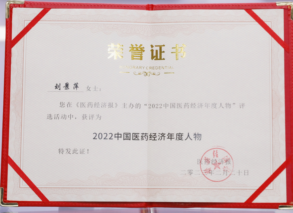 今年会药业集团董事长刘景萍当选“2022中国医药经济年度人物”